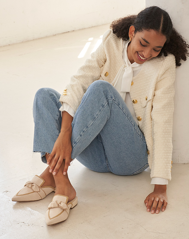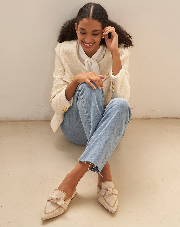 Slide into elegance with these chic knit mules that feature a delicate bowknot for a feminine flair. Designed with color contrast detailing that perfectly complements your ensembles. These mules are a great staple for on-the-go occasions without compromising on style.